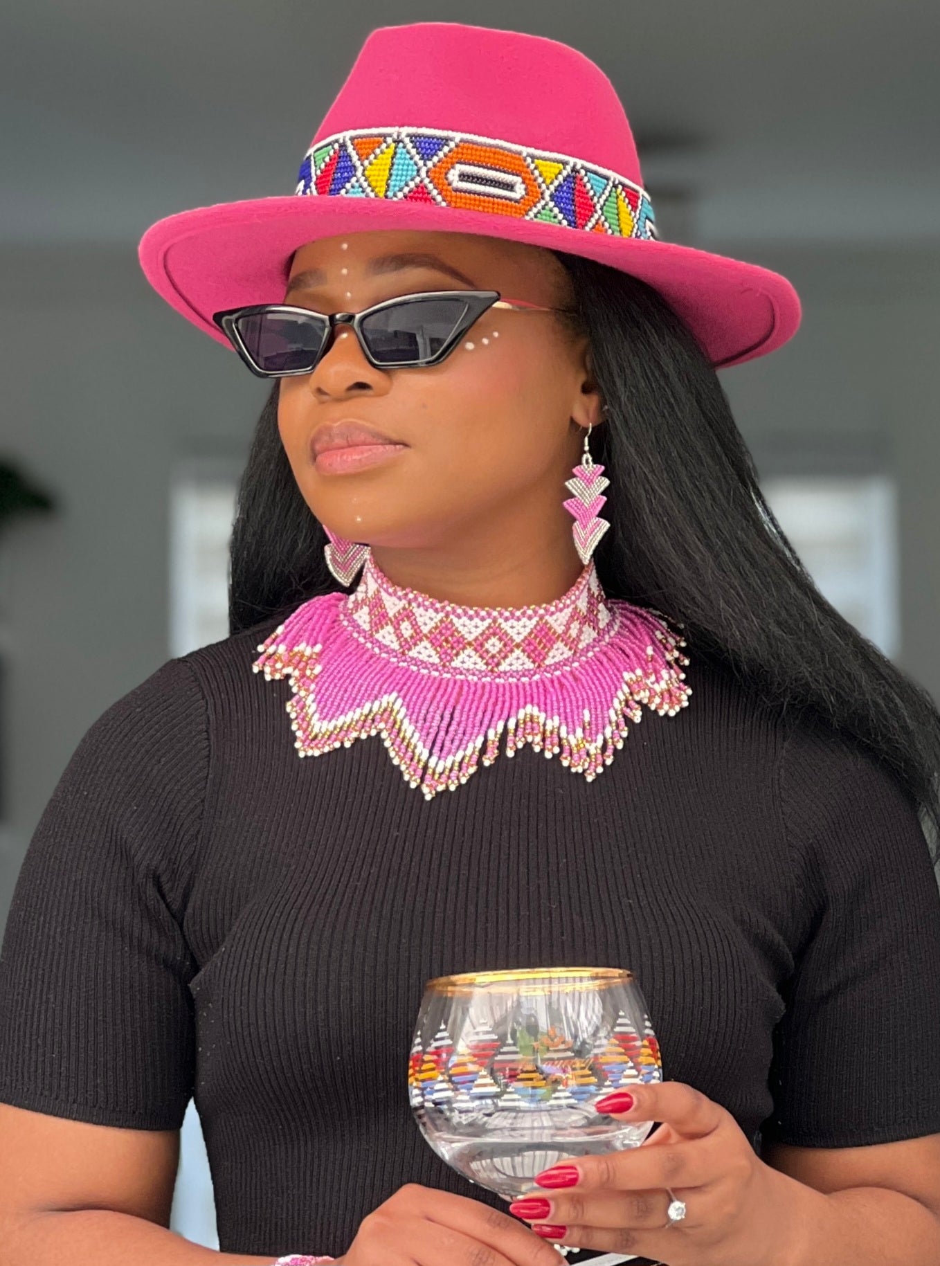 Handmade beaded chocker with adjustable loops at the back.